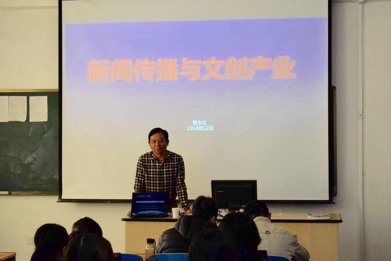 12月6日下午,青岛天诚联合创意文化集团董事长贾永壮,在博学楼506教室为新闻与传播学院广大师生做了一场《新闻传播与文化产业—在校大学生如何做好就业准备》的精彩报告。院长赵秀凤、学生工作办公室主任王洪运、广告系部分老师出席了报告会。