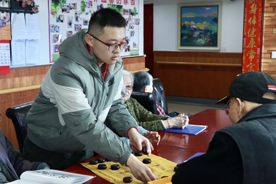 老人们对于同学们的到来感到非常的开心,他们与同学们一起唱歌,一起做游戏,同学们也非常积极地陪着老人做健身操,并组织起来为老人们进行了才艺表演。