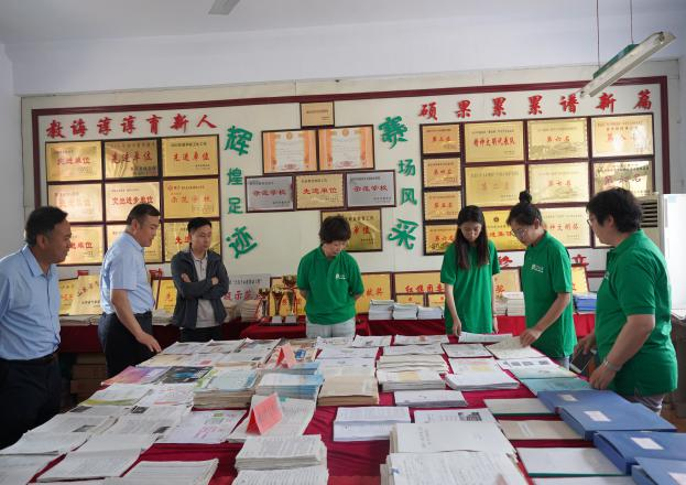 在石庙镇第二中学,窦院长、戚书记和“布谷鸟计划”支教团询问了同学们的学习、生活状况,参观了学校的书法和国画社团等校园传统文化教育活动。