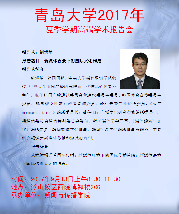 新闻与传播学院夏季学期高端学术报告会本周预告