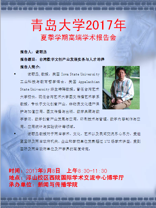 新闻与传播学院夏季学期高端学术报告会一周预告
