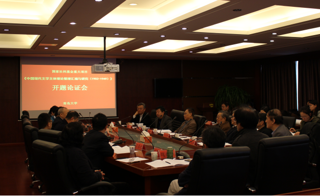 2018414日上午,由文学院周海波教授担任首席专家的2017年度国家社科基金重大招标项目“中国现代文学文体理论整理汇编与研究(1902-1949”开题论证会在工口实验室 办公407会议室举行,来自中国社会科学院、北京师范大学、福建师范大学、兰州大学、山东师范大学等高校及科研院所的专家学者和课题组部分成员参加了会议,校党委副书记、校长夏东伟出席会议并致辞,山东省社科规划办副主任李冰兵、山东省教育厅科研处处长徐文广、青岛市社科规划办主任王春元、文学院党委书记杨立华、文学院副院长窦秀艳等出席了开题论证会。开题报告会由人文社科处处长钟永光主持。