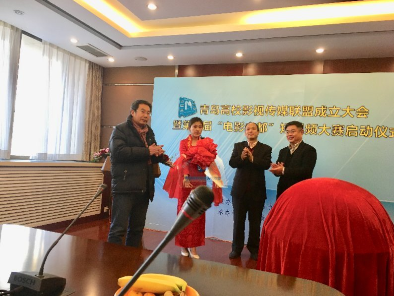 办公楼201会议室举行。校党委常委、副校长夏东伟,青岛市文学艺术界联合会副主席徐强,山东省高校影视传媒联盟会长马池珠共同为青岛高校影视传媒联盟揭牌。