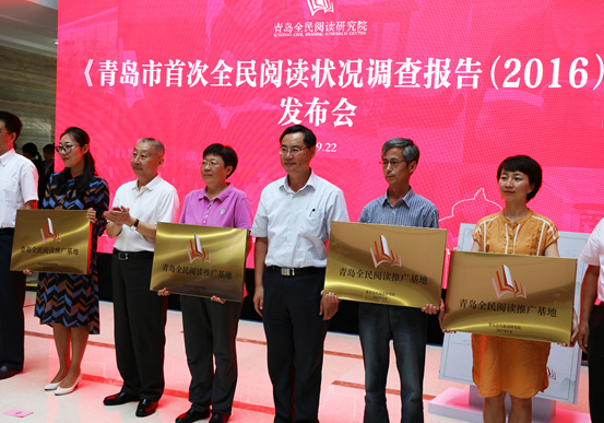 9月22日,青岛全民阅读研究院(青岛全民阅读智库)举行秋季发布会,首次发布了青岛市全民阅读状况调查报告。报告显示,2016年青岛市成年居民的图书阅读率为62.7%,较全国高3.9个百分点;数字化阅读方式的接触率为80.7%,较全国高12.5个百分点;各媒介综合阅读率为89.0%,较全国高9.1个百分点;青岛市成年居民人均纸质图书阅读量和电子书阅读量分别为4.45本和2.73本,均略低于全国水平(4.65本和3.21本)。