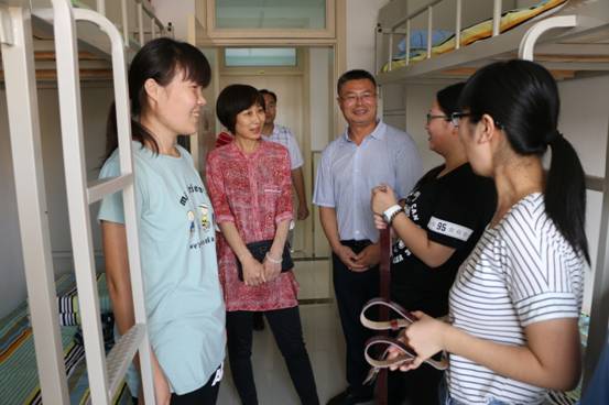 9月9日下午,新闻与传播学院党委书记张银亭、院长赵秀凤一起走进2016级新生的宿舍,与新生同学进行亲切交谈。